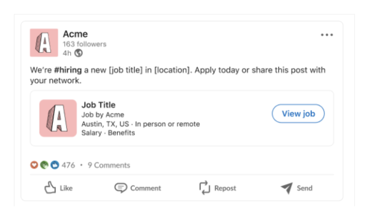 Once this feature is enabled, the application will automatically share one open position every day as a pre-scheduled post. These posts can then be edited after they are shared if you wish.